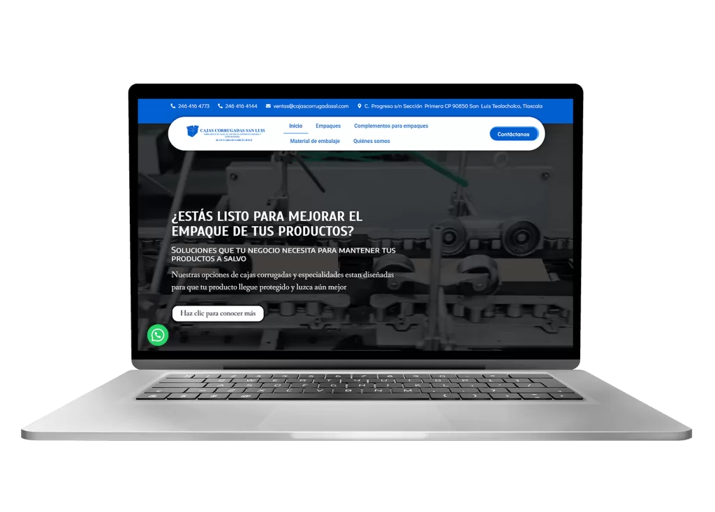 Cliente: cajascorrugadassl .comUbicación: México Servicio Desarrollo Web • CorporativaTodos los derechos reservados. ¡Agenda una videollamada! Contacto